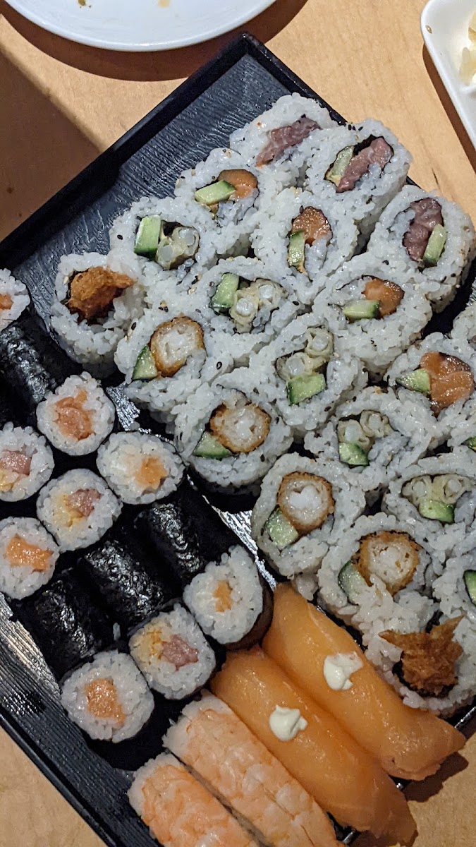 Great sushi restaurant and buffet, small but cosy and fast serving food and waiters. The sushi was well prepared and evenly portioned with rice to sushi. The menu options between cold cuts, main hot meals to bites was great. We tried a range out and was never disappointed in the quality. Would recommend compared to the more central buffet options.